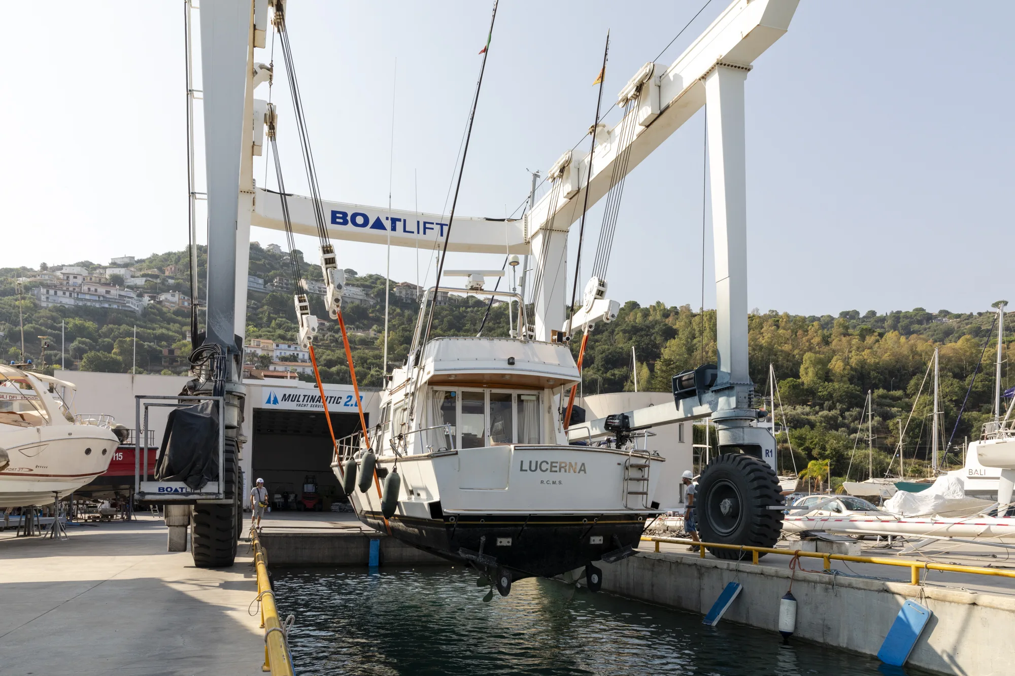 Il cantiere dispone di un travel lift da 110 tonnellate, gru di supporto e sistema di lavaggio a pressione per carene.